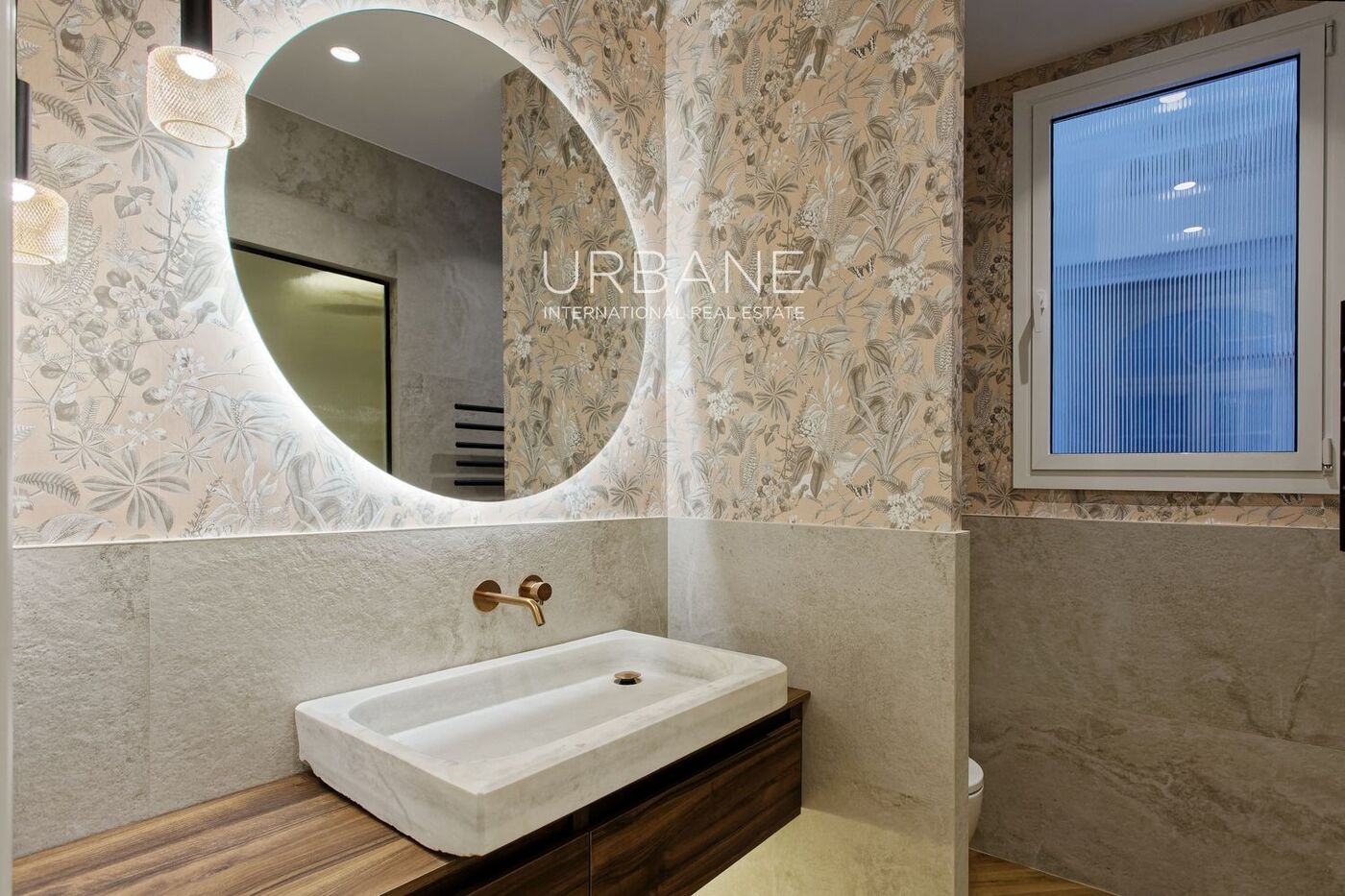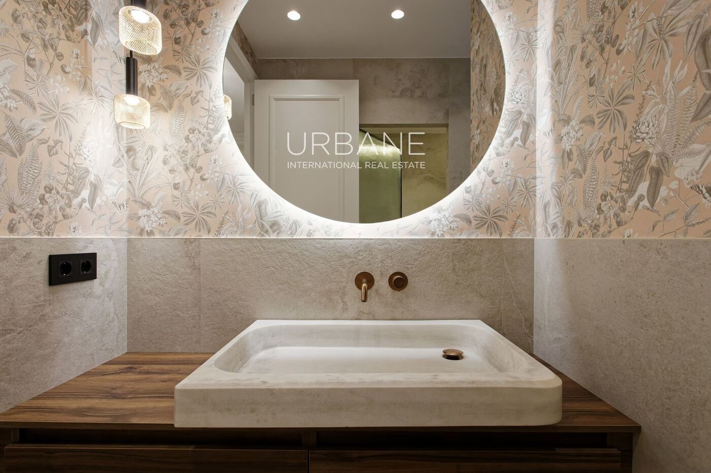 La vivienda fusiona magistralmente el carácter modernista original con acabados contemporáneos de alta gama, creando un espacio atemporal y elegante. La amplia zona de día se articula en torno a un luminoso salón-comedor, un ambiente acogedor pensado tanto para el confort diario como para encuentros memorables. La cocina abierta de diseño, equipada con electrodomésticos Siemens de alta gama, cuenta con una gran isla central ideal para compartir y una vinoteca para los amantes del vino. Una sofisticada chimenea de etanol aporta calidez y un ambiente acogedor durante todo el año.