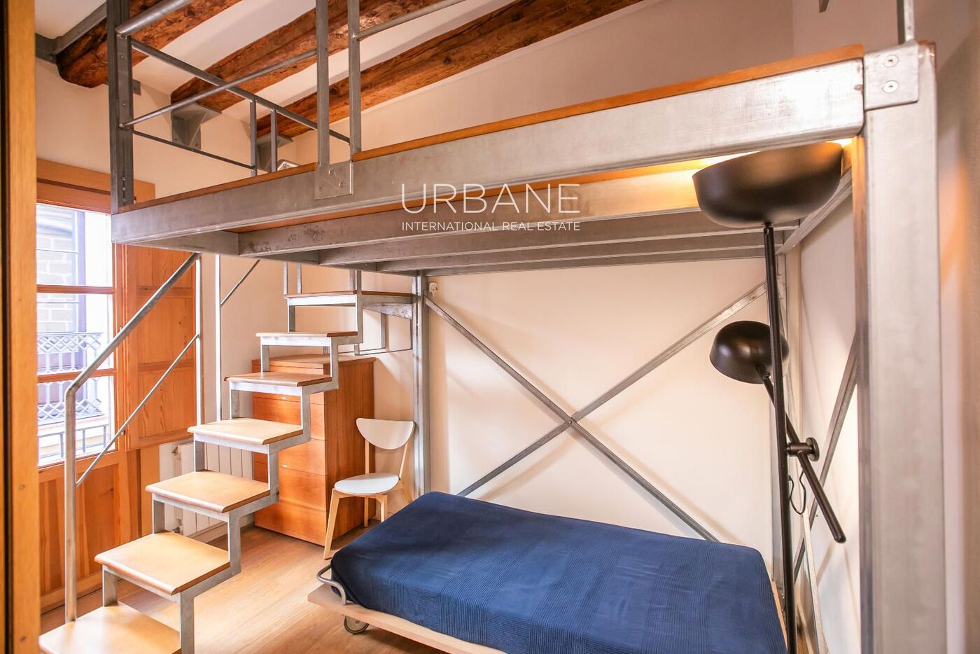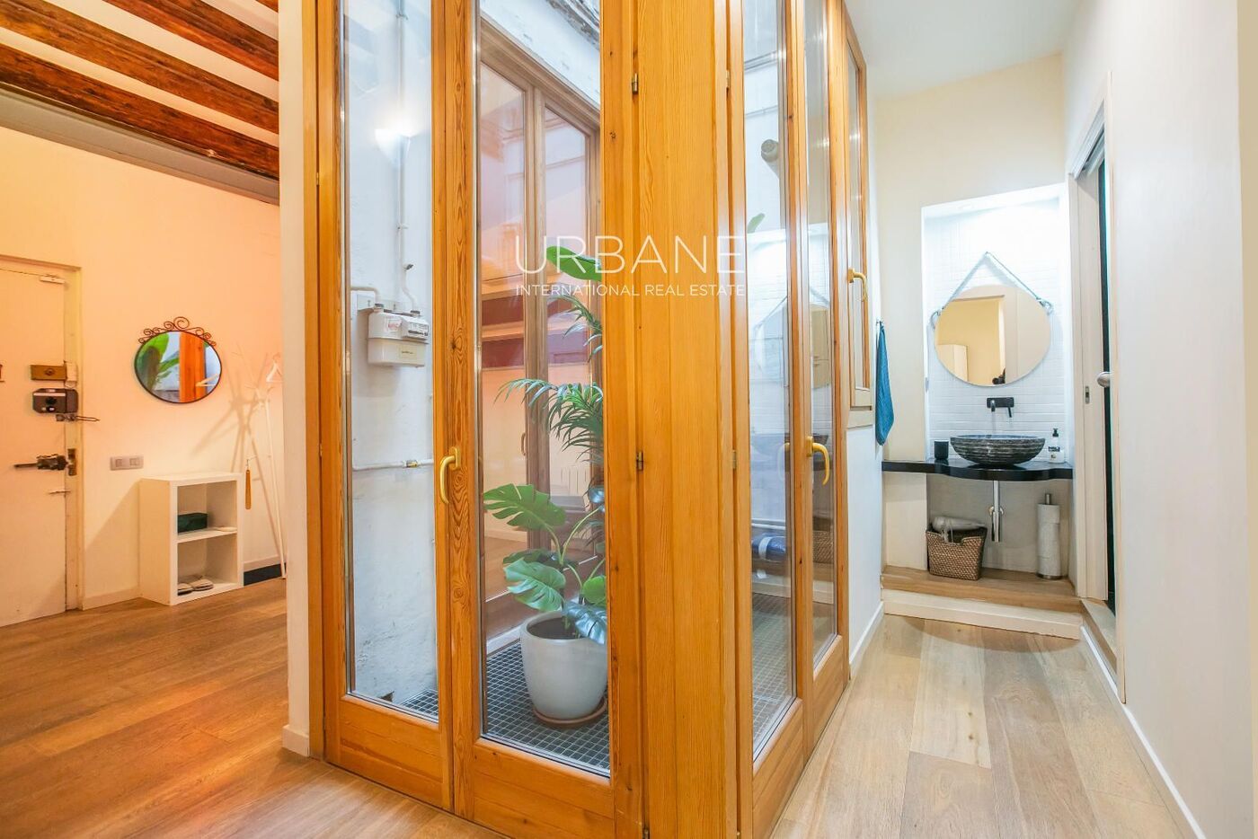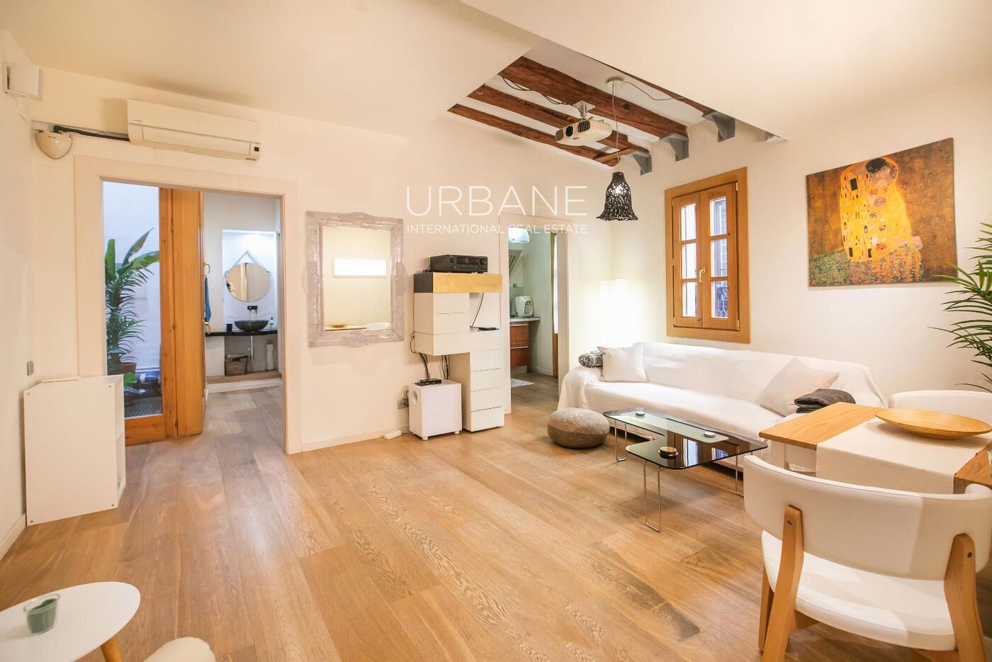 One of its greatest attractions is the exposed beams on the ceiling, present in both the living room and bedrooms, which add warmth, character, and that timeless Barcelona charm. The main space is welcoming and full of personality, perfect for everyday use as well as for entertaining guests.