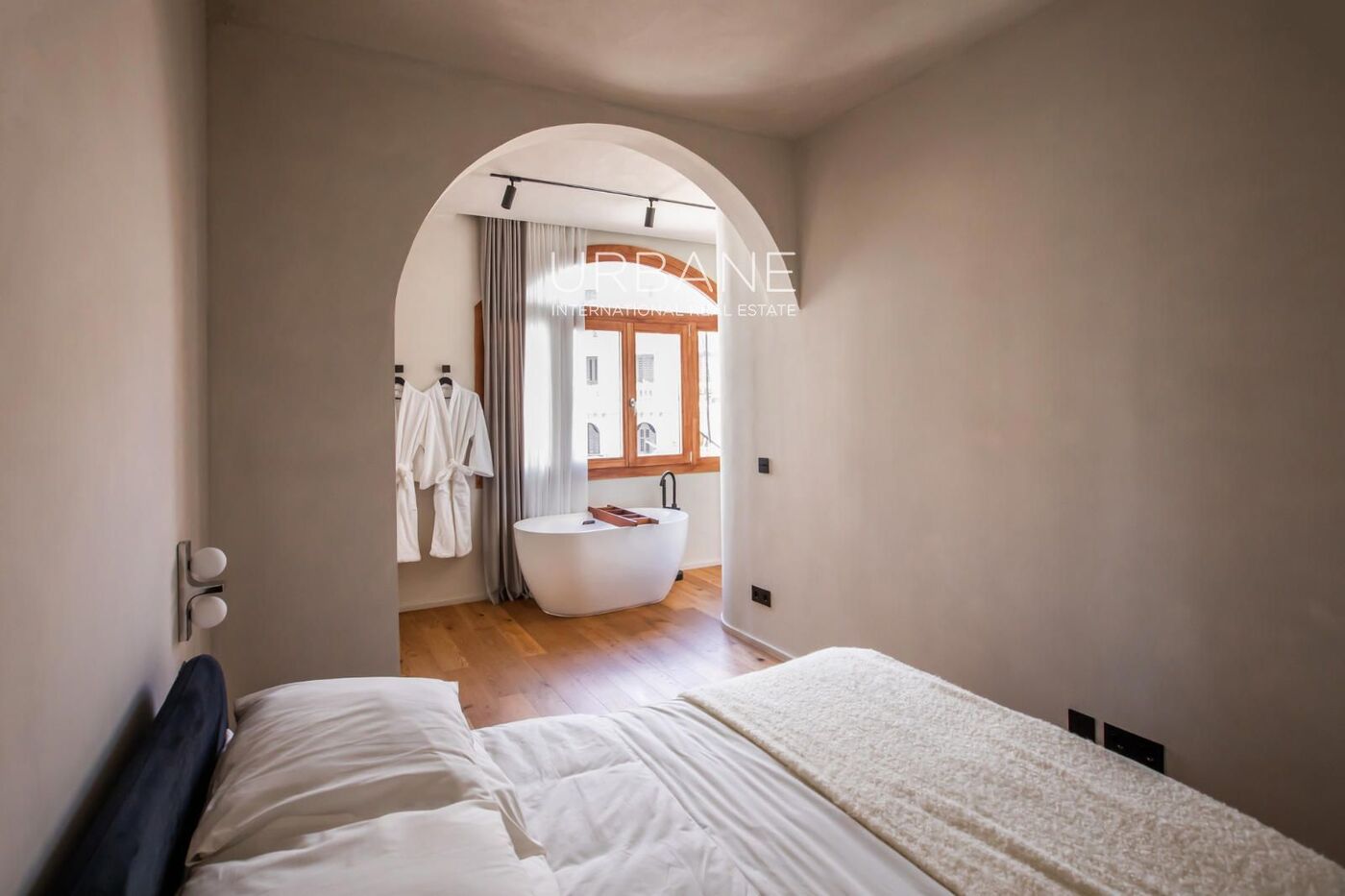 El dormitorio es amplio, luminoso y tranquilo: un auténtico refugio urbano. Espacioso, decorado en tonos suaves y con acabados de calidad, está pensado para el descanso. Como detalle distintivo, el apartamento cuenta con una bañera exenta que aporta un toque de sofisticación y bienestar.