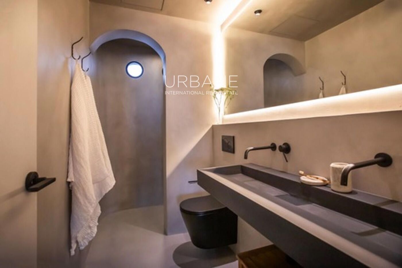 El baño, por su parte, presenta un diseño moderno, con materiales elegantes y una estética sobria y relajante.