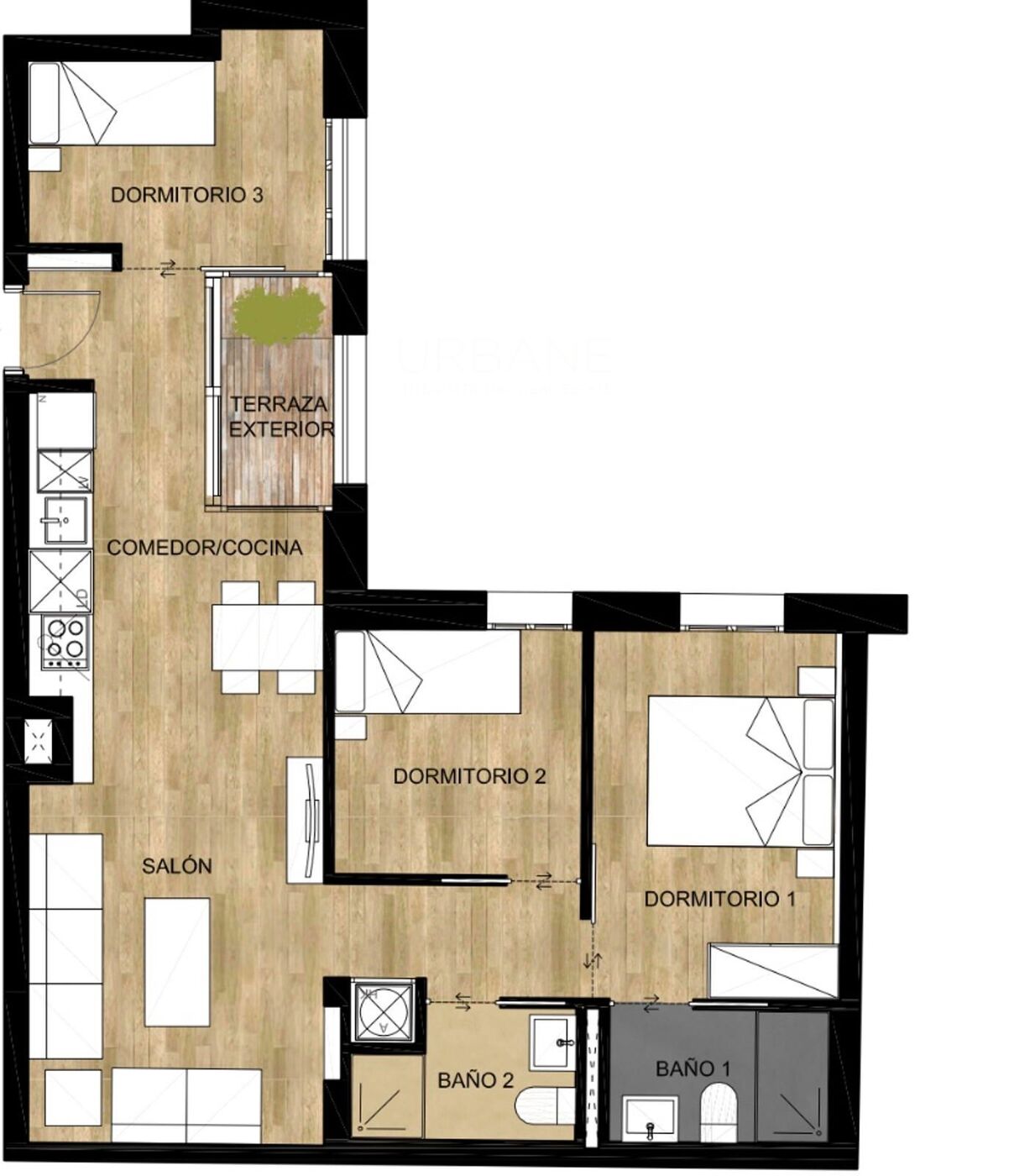 Este luminoso y versátil piso de 3 dormitorios y 77 m² se encuentra en la tercera planta del edificio Ecoliving 1802, totalmente rehabilitado, en la calle Riereta, en pleno corazón de Barcelona. El edificio es una antigua fábrica textil reconvertida y transformada en una comunidad residencial eco-consciente, con un estilo urbano-industrial relajado y acabados de alta calidad.