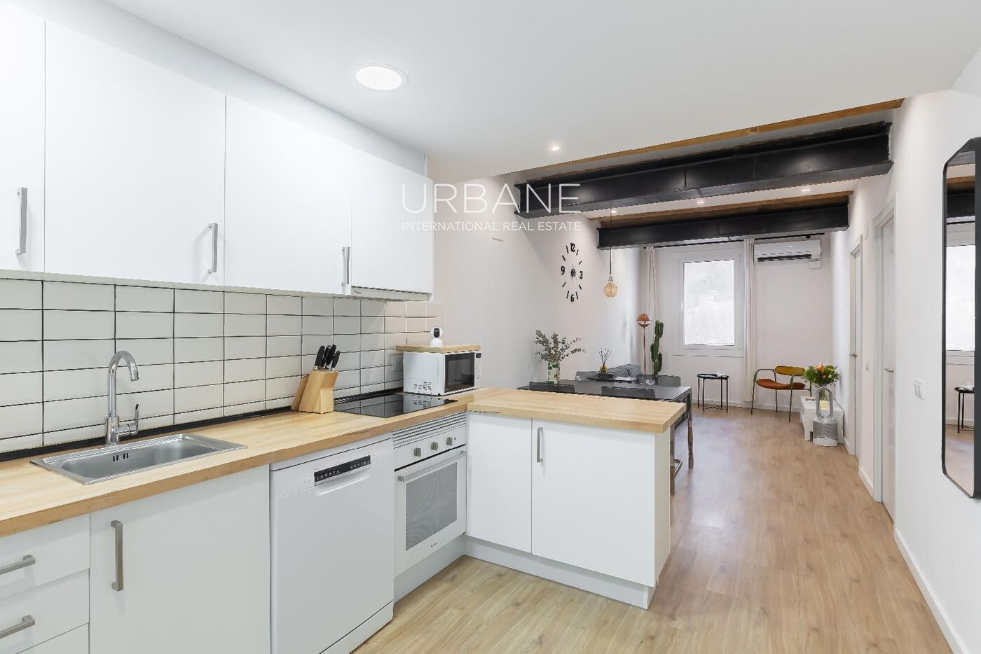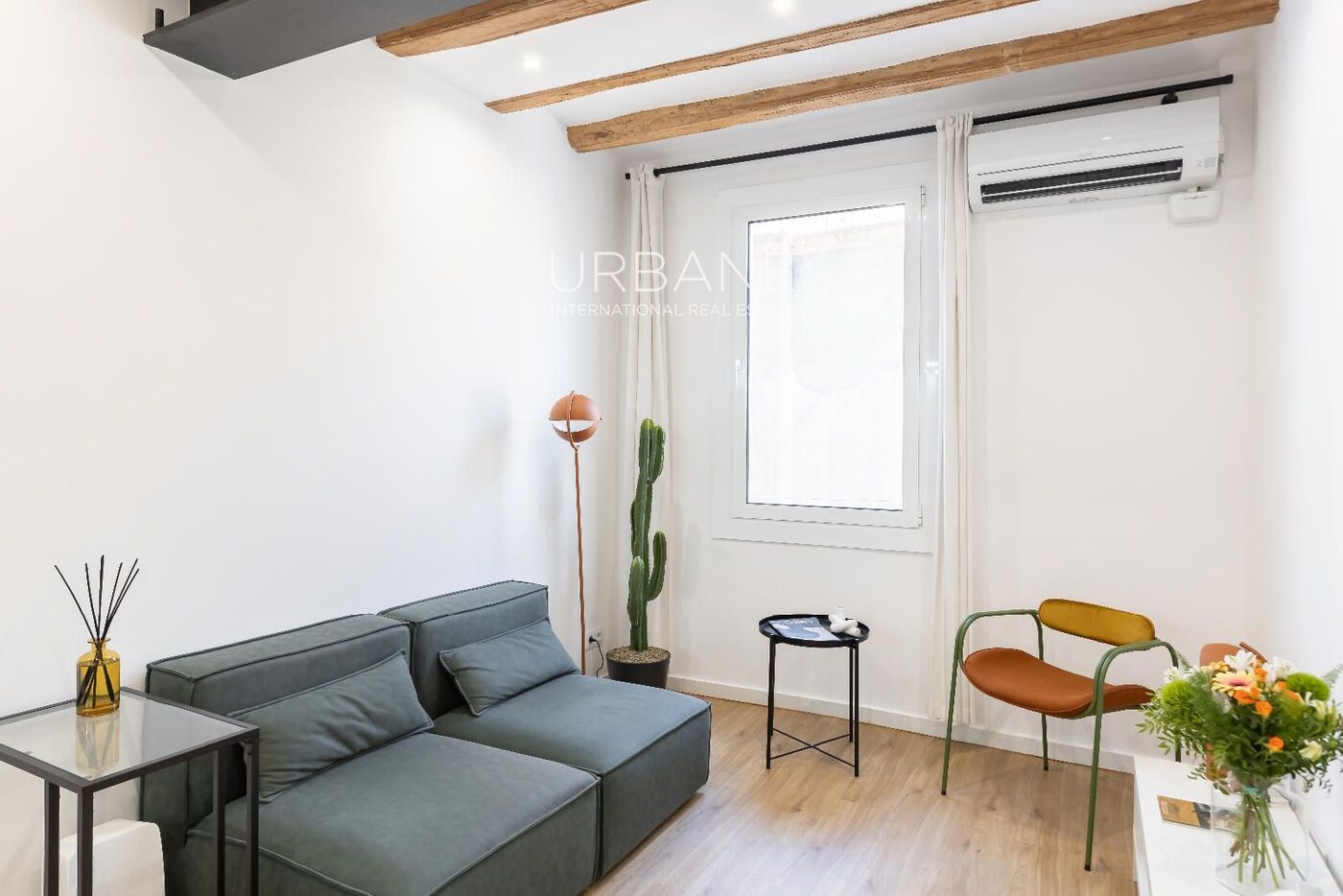Situado en la tercera planta de un edificio histórico en el vibrante barrio de El Raval en Barcelona, este apartamento completamente renovado combina a la perfección la vida moderna con el encanto clásico. Con una superficie de 55 m², cuenta con dos cómodos dormitorios, un baño contemporáneo y un amplio espacio de salón de concepto abierto. Gracias a su orientación sureste, el hogar recibe abundante luz natural, lo que lo convierte en una opción ideal para quienes buscan confort, estilo y practicidad.