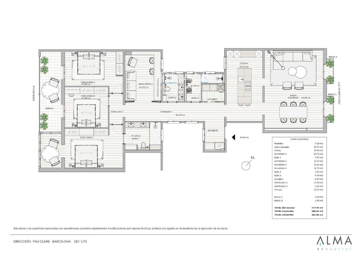 La vivienda, con 203 m², ha sido completamente rehabilitada con gran cuidado, respetando y recuperando elementos arquitectónicos originales que realzan su valor histórico, e integrando a la vez el confort y el diseño contemporáneos. El resultado es una fusión equilibrada entre encanto clásico y vida moderna.