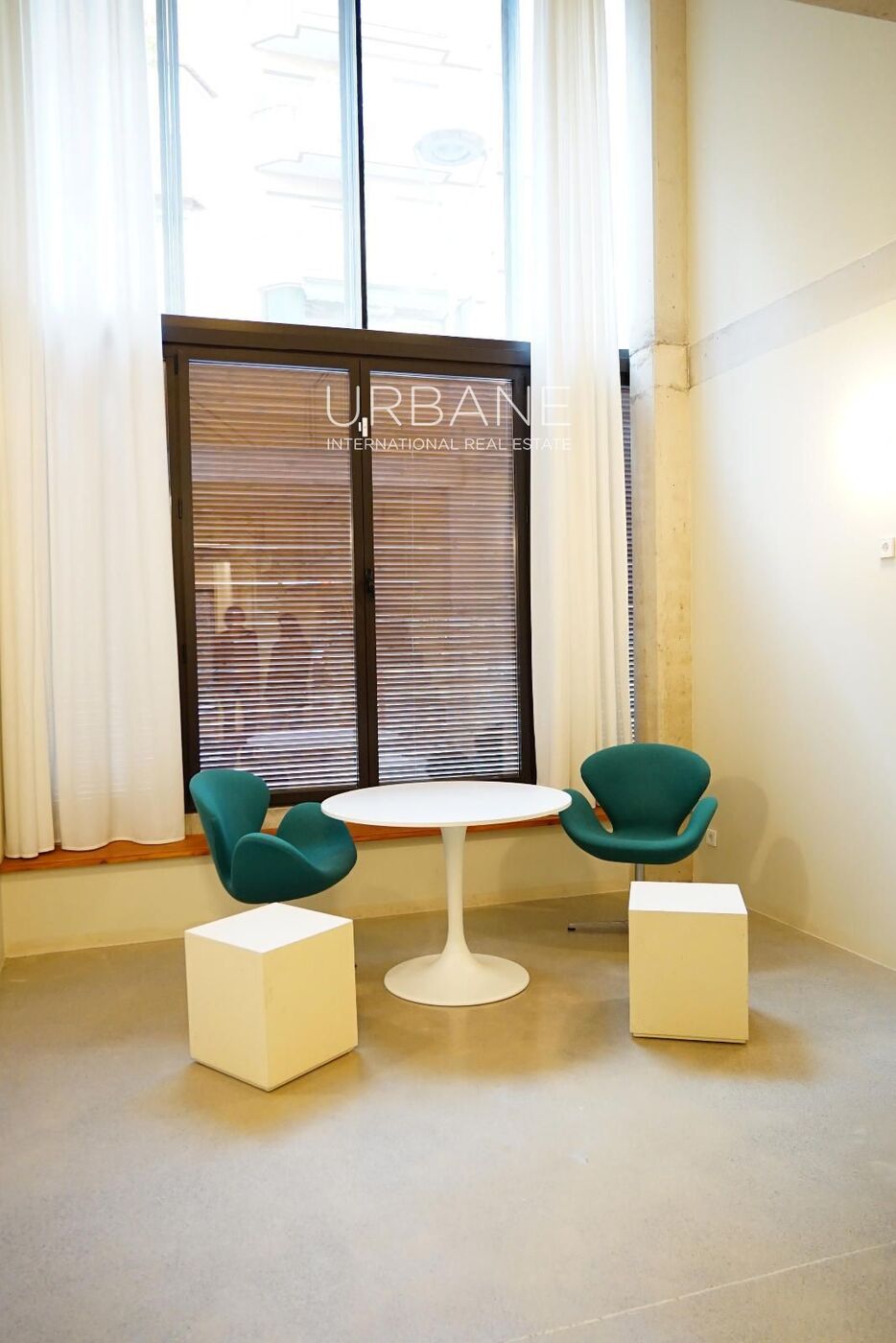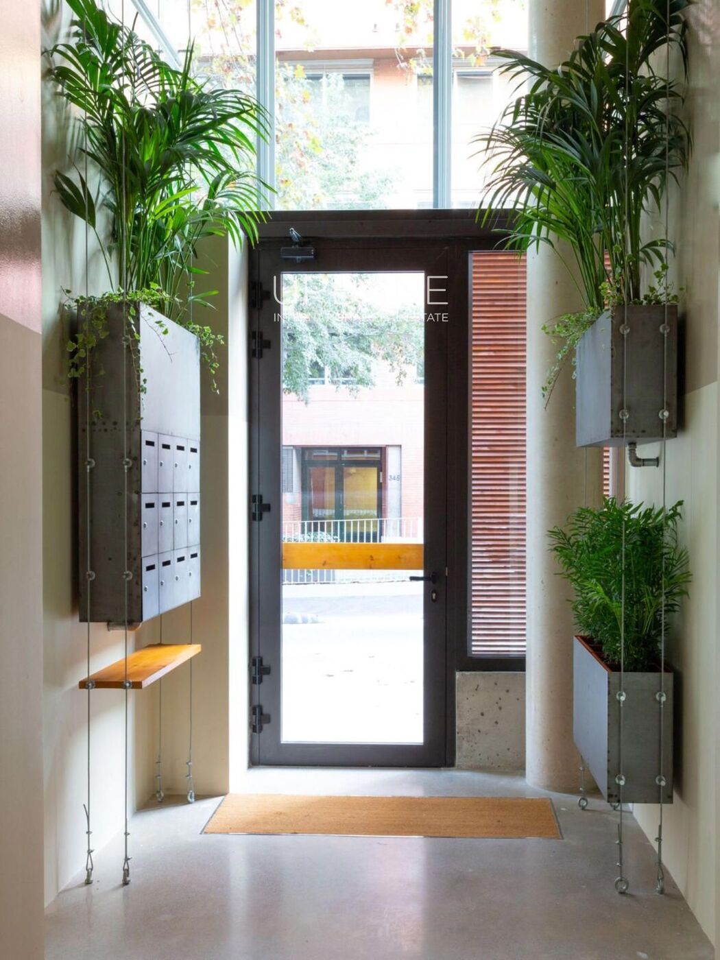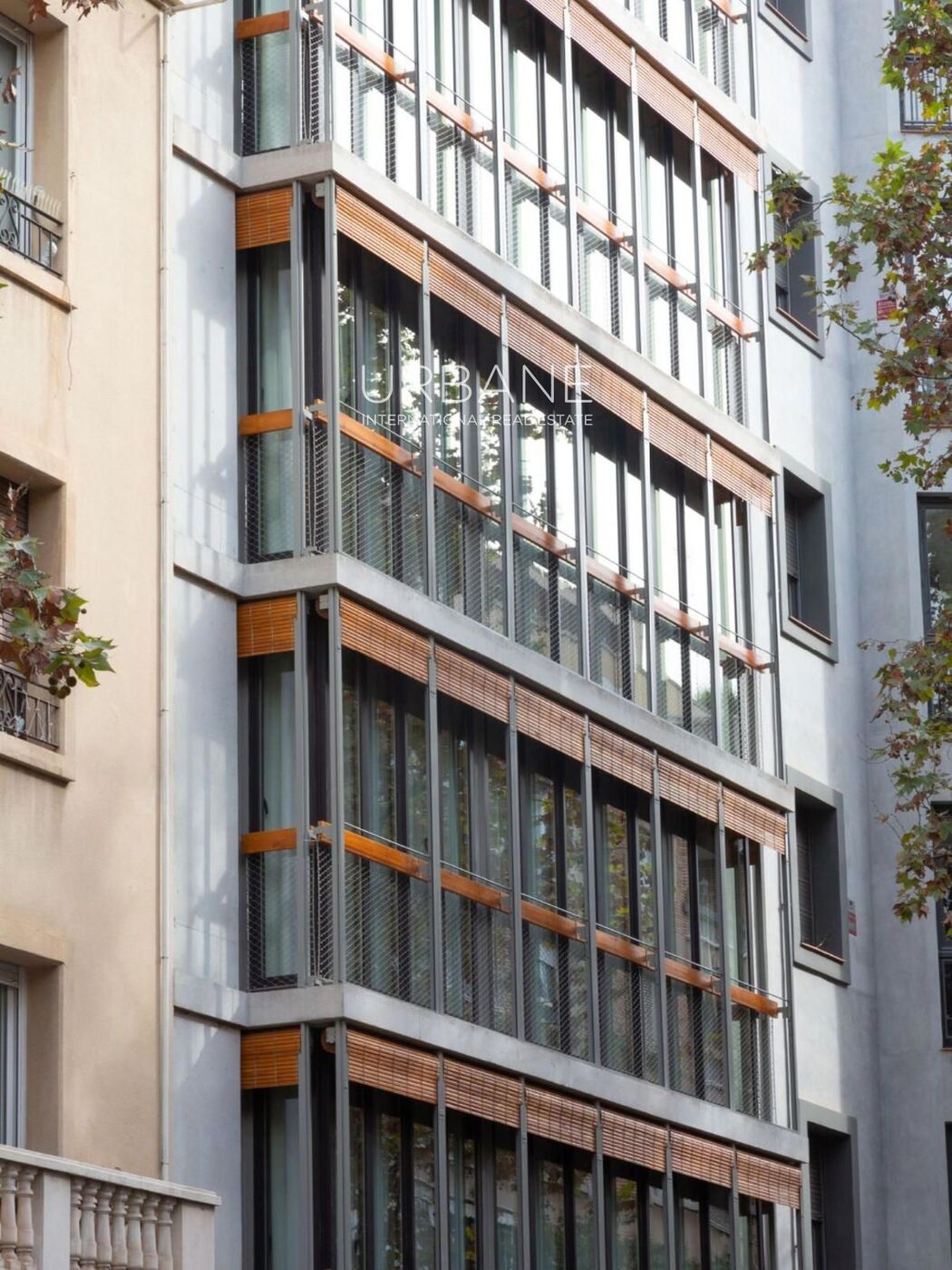El diseño del apartamento combina elementos industriales, como techos de hormigón visto, con acabados modernos, mientras que los ventanales de suelo a techo amplían la sensación de espacio y luminosidad. Un sistema de protección de fachada mediterráneo con persianas de madera garantiza un excelente control climático, manteniendo el apartamento fresco en verano y cálido de manera natural en invierno.