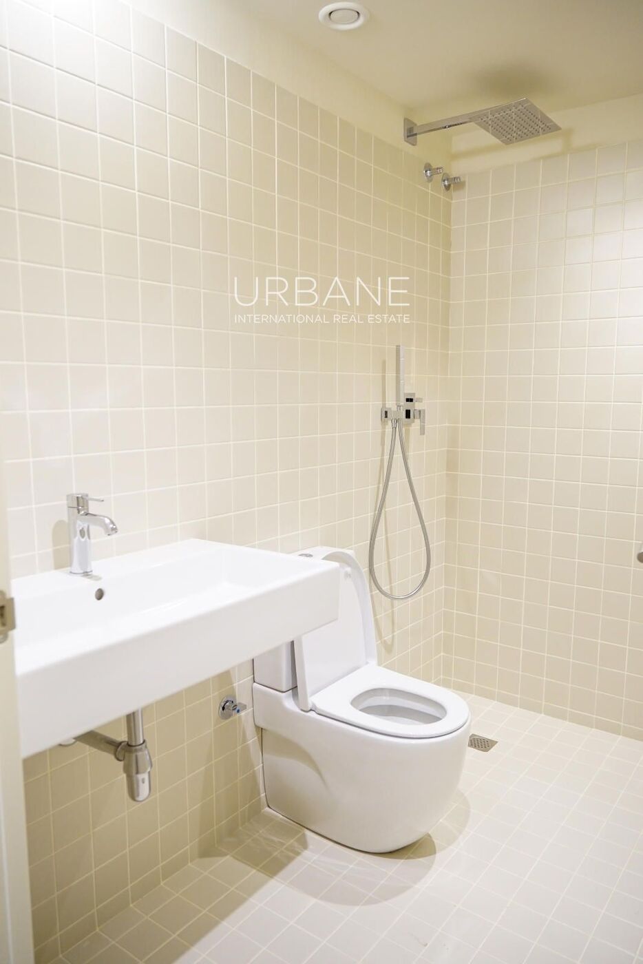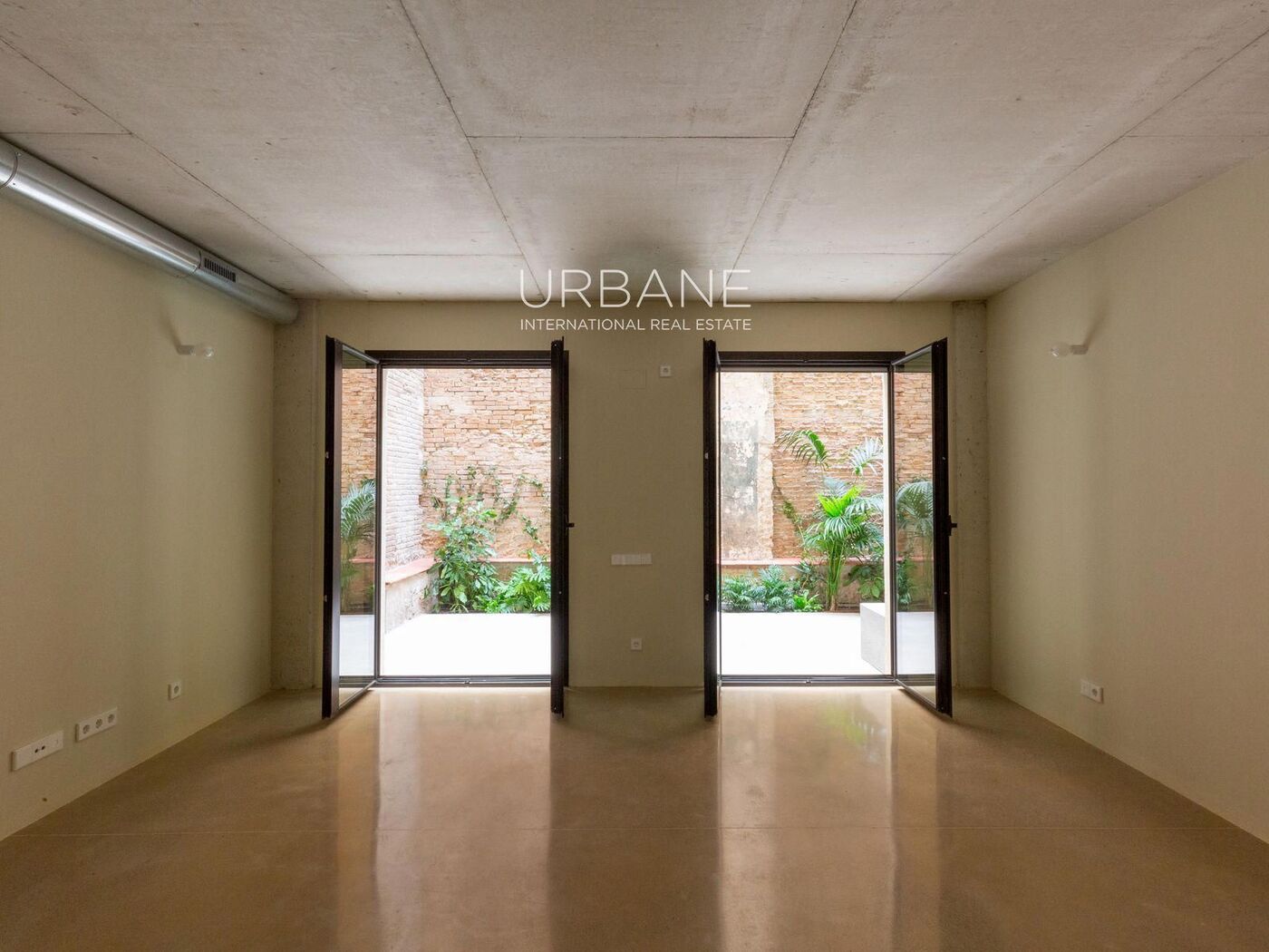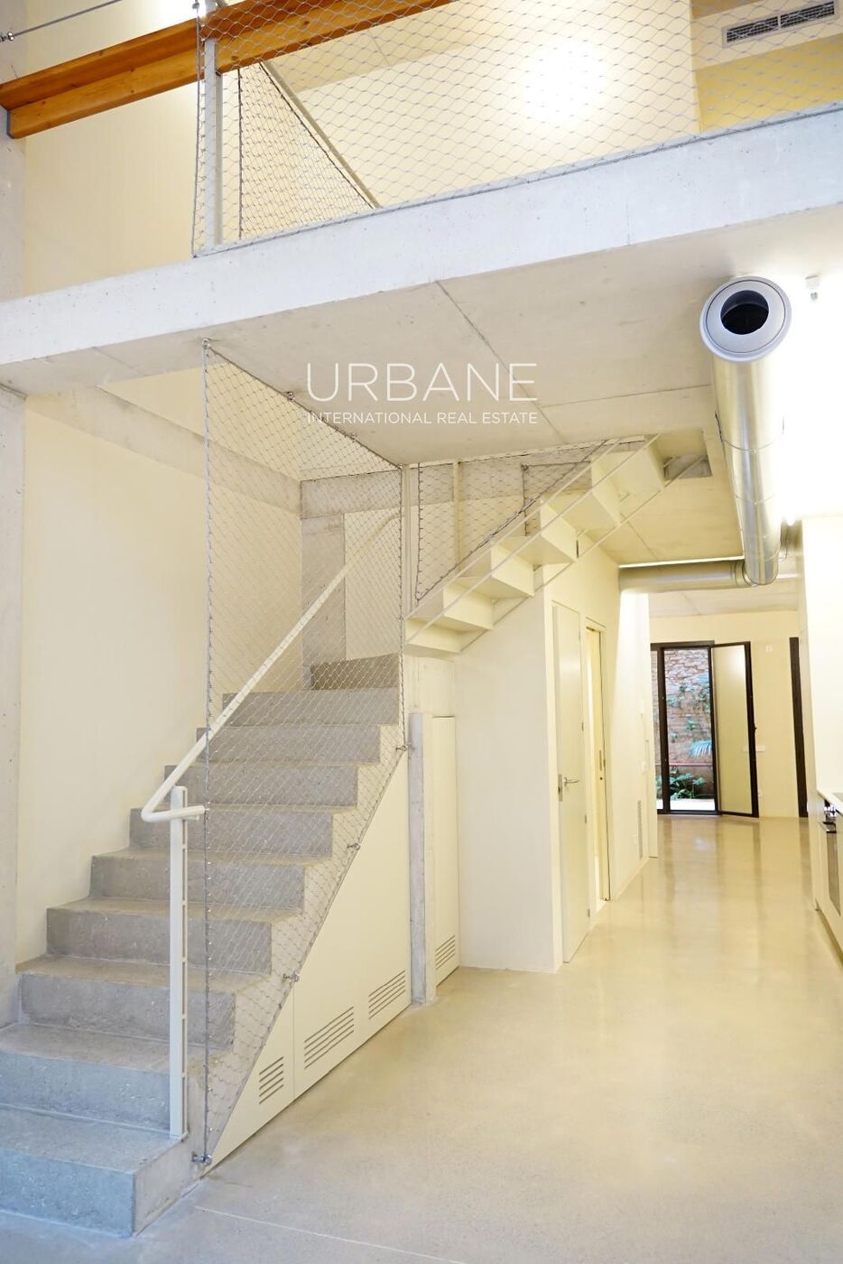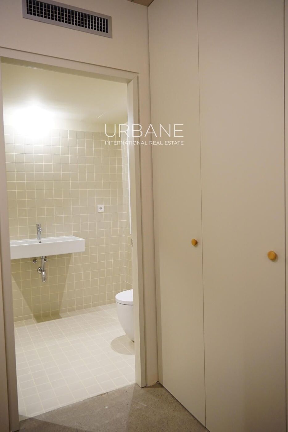 El diseño del apartamento combina elementos industriales, como techos de hormigón visto, con acabados modernos, mientras que los ventanales de suelo a techo amplían la sensación de espacio y luminosidad. Un sistema de protección de fachada mediterráneo con persianas de madera garantiza un excelente control climático, manteniendo el apartamento fresco en verano y cálido de manera natural en invierno.