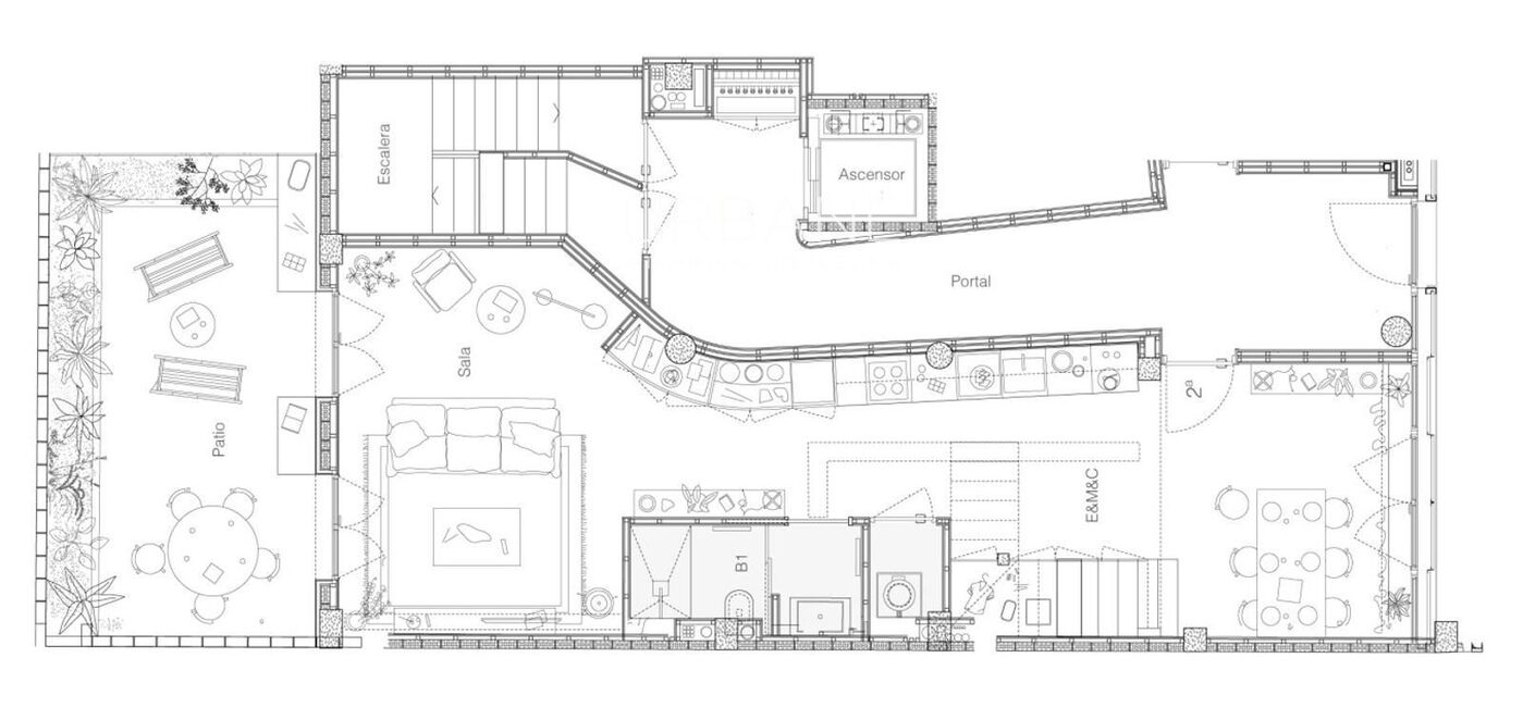En la planta superior, los dos dormitorios son un remanso de paz, cada uno con acceso a una galería interior privada. Dos baños adicionales en esta planta proporcionan privacidad y comodidad, ideal para familias o profesionales que buscan un estilo de vida sofisticado.
