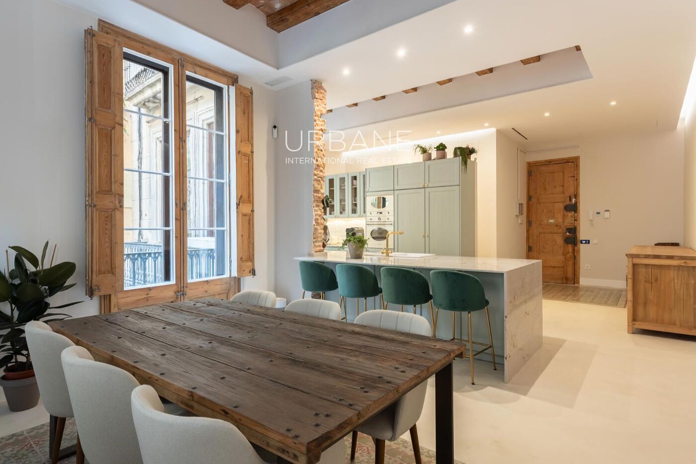 En entrar, et rep un espai càlid i acollidor ple de llum natural. L'apartament disposa de tres habitacions dobles, oferint una disposició flexible per a famílies o companys de pis. La recent i completa reforma ha aportat una sensació fresca i contemporània a l'espai, tot conservant elements arquitectònics clàssics que fan ressò de la rica història del Barri Gòtic.