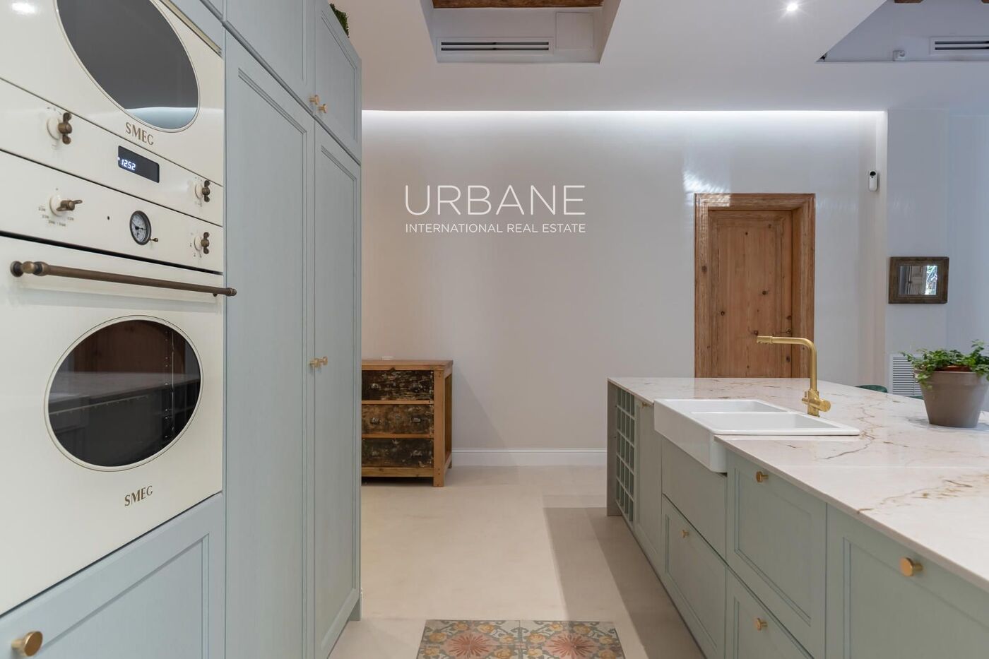 La sala d'estar de planta oberta està dissenyada tant per a la relaxació com per a l'entreteniment, amb un ampli espai per crear el teu propi oasi personal a la ciutat. La cuina totalment equipada compta amb electrodomèstics d'alta gamma, perfectes per a qualsevol que li agradi cuinar. La propietat també és accessible amb ascensor, afegint comoditat.