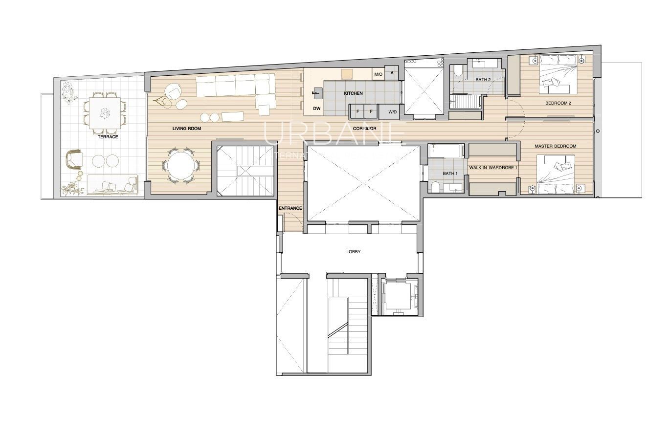 Impressionant àtic de 2 dormitoris situat al prestigiós districte de l'Eixample de Barcelona. Amb 3 banys i una àmplia distribució de 122m², que inclou una encantadora terrassa de 26m², aquesta residència ofereix un estil de vida realment encisador.