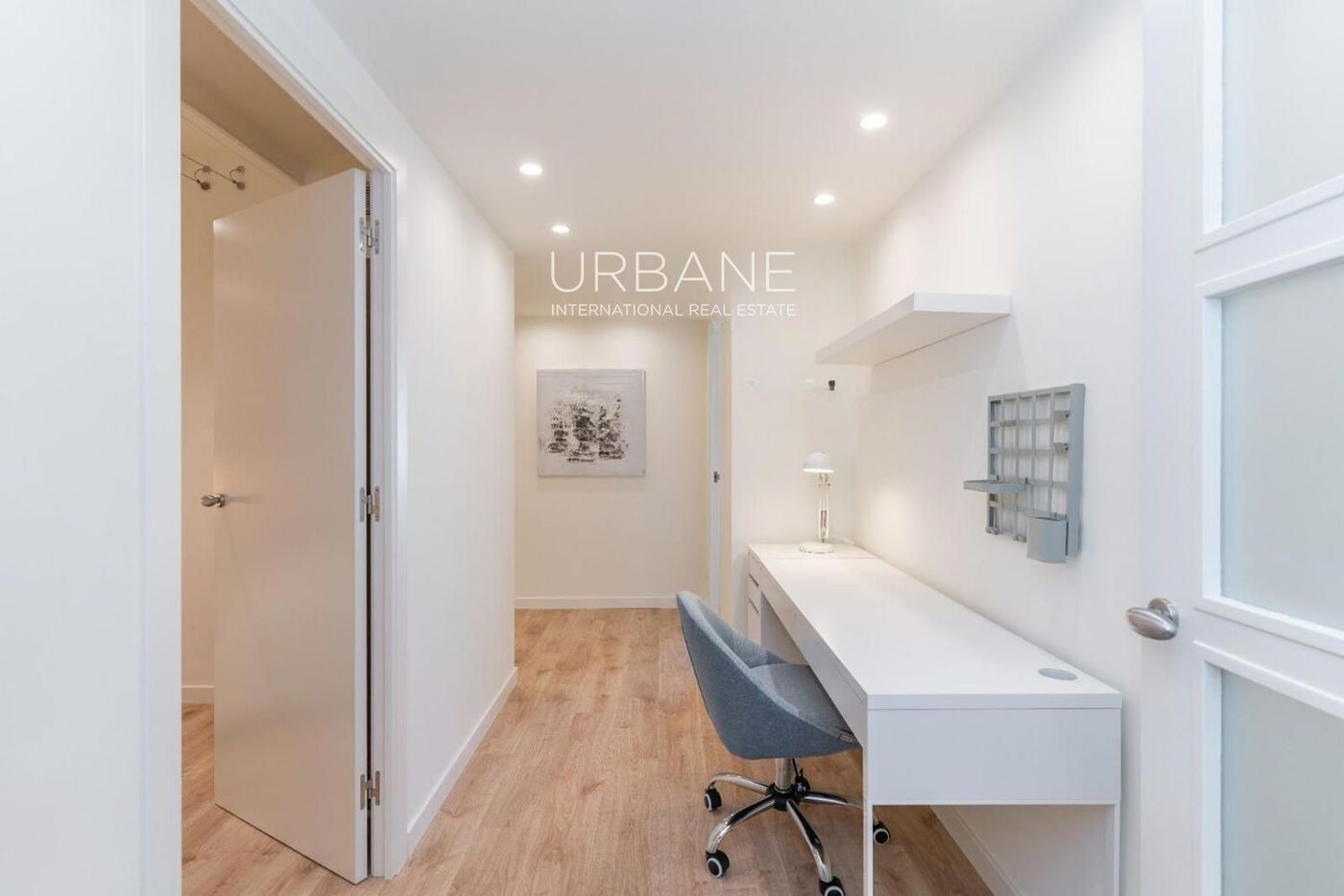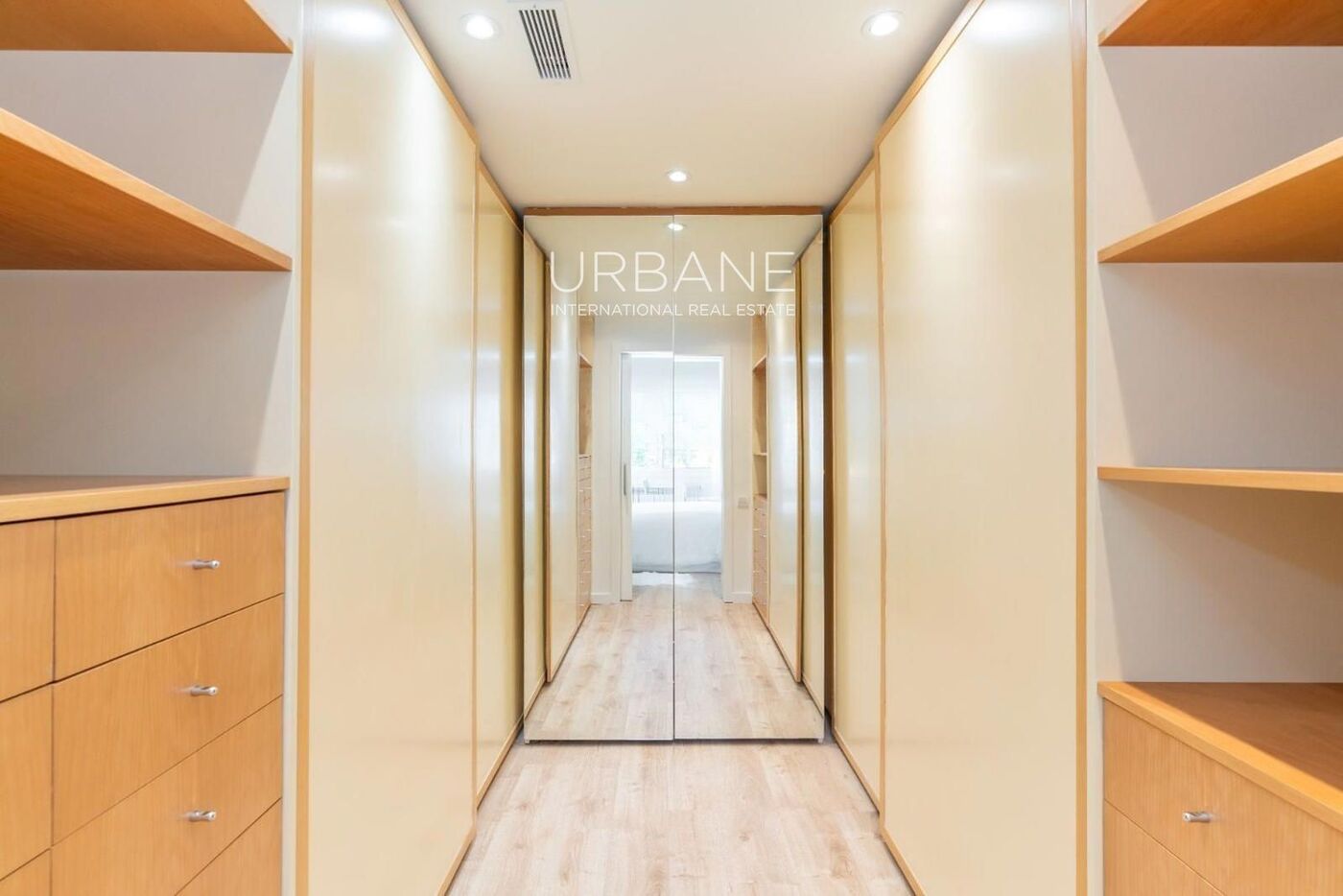 Die Wohnung verfügt über drei große Doppelzimmer, darunter eine Master-Suite mit Ankleideraum, Bad mit Tageslicht und ruhigem Blick auf einen typischen Innenhof des Eixample. Das geräumige Wohn-Esszimmer bietet zwei Balkone mit freiem Blick auf die baumbestandene Rambla, wodurch Licht und urbane Atmosphäre in den Innenraum gelangen.