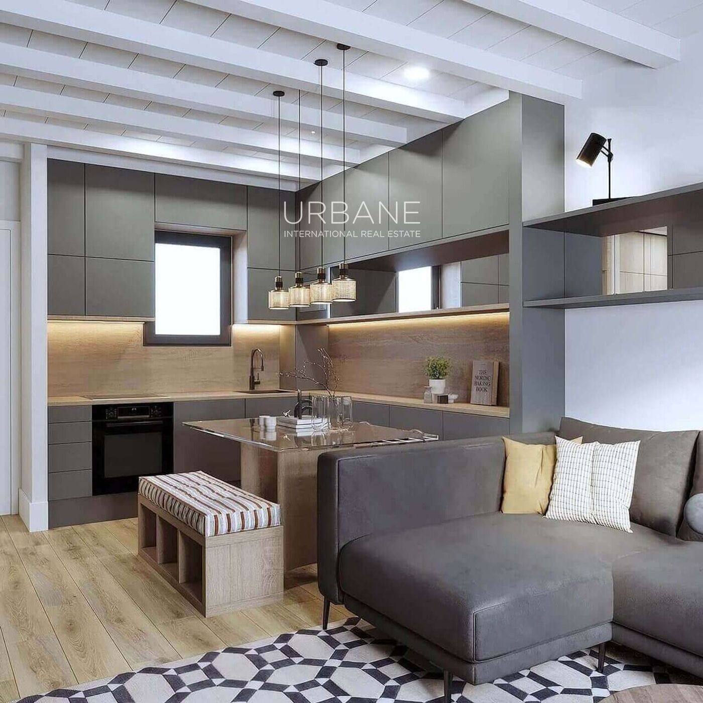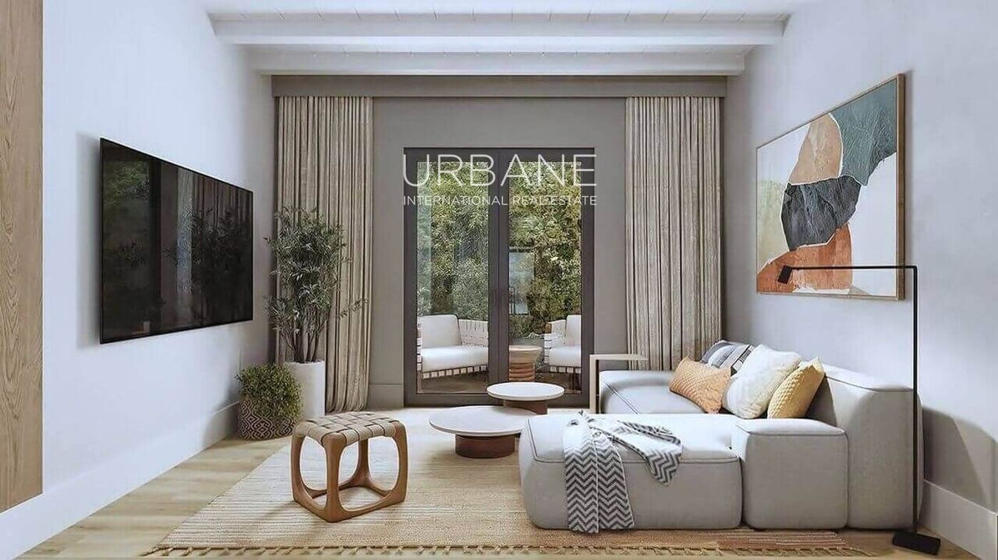This exceptional ground floor duplex in Gracia offers a perfect blend of modern design and functionality. With 65 sqm, the apartment is meticulously designed to optimise space and natural light while preserving the essence of the original building.