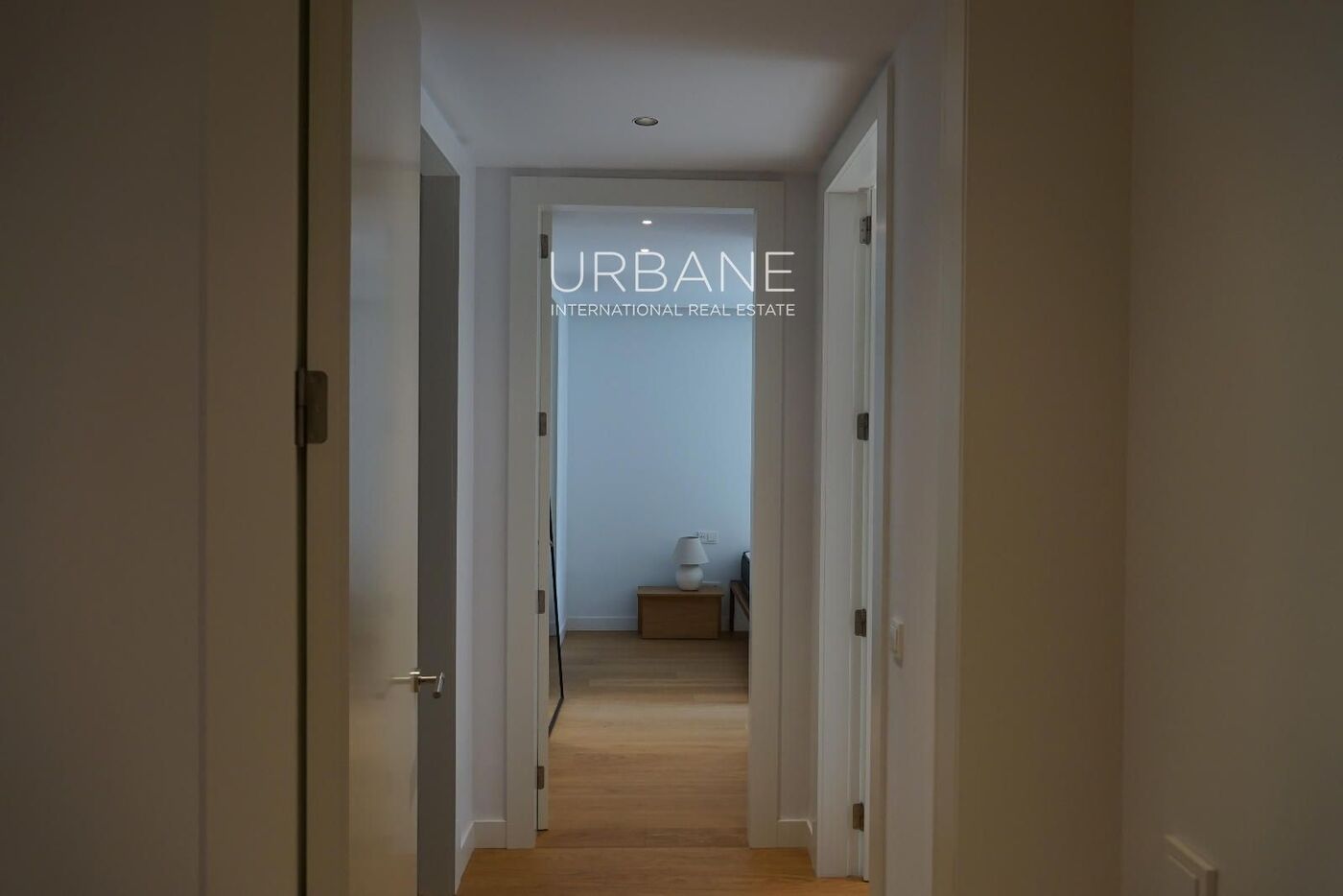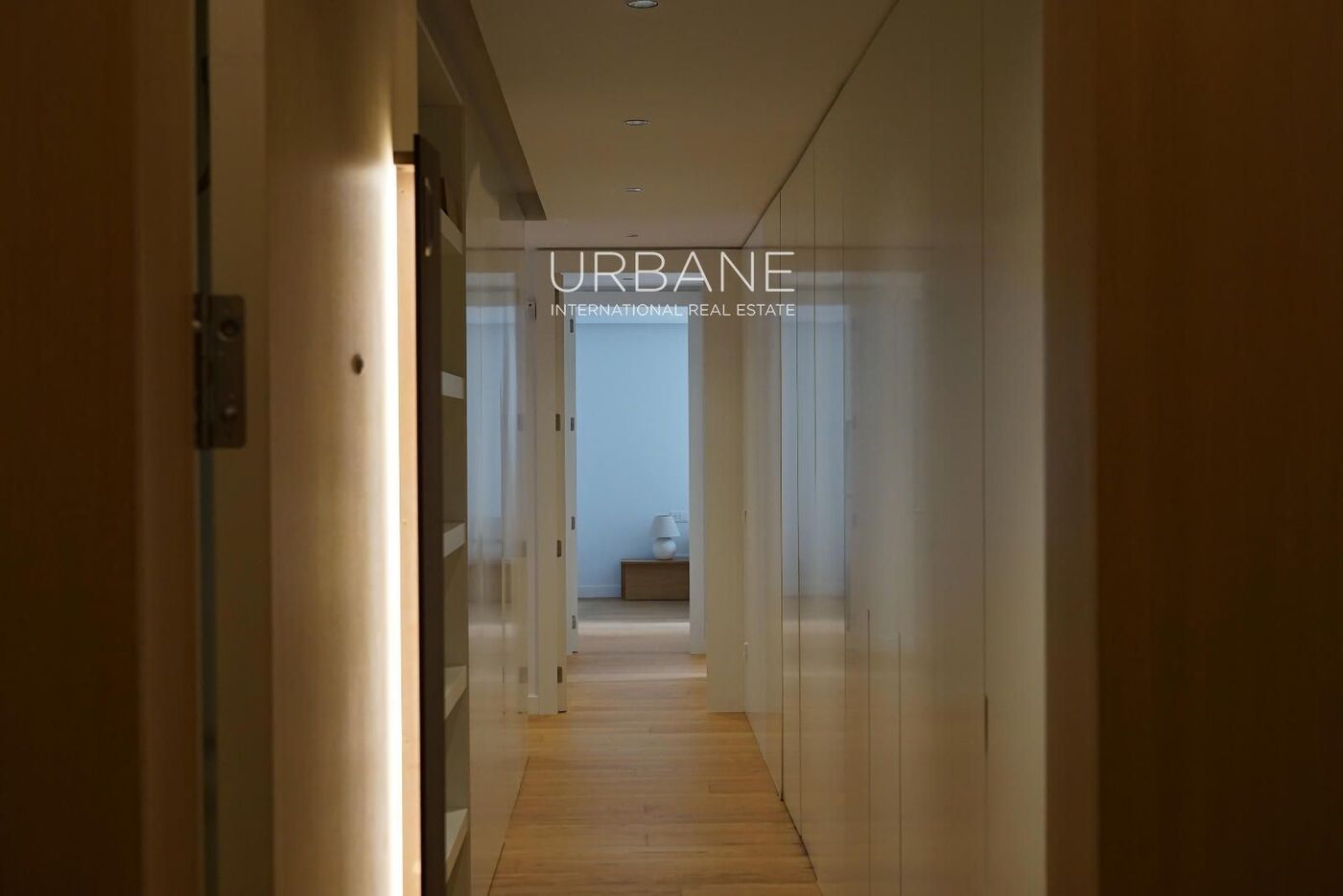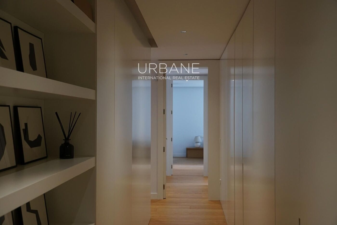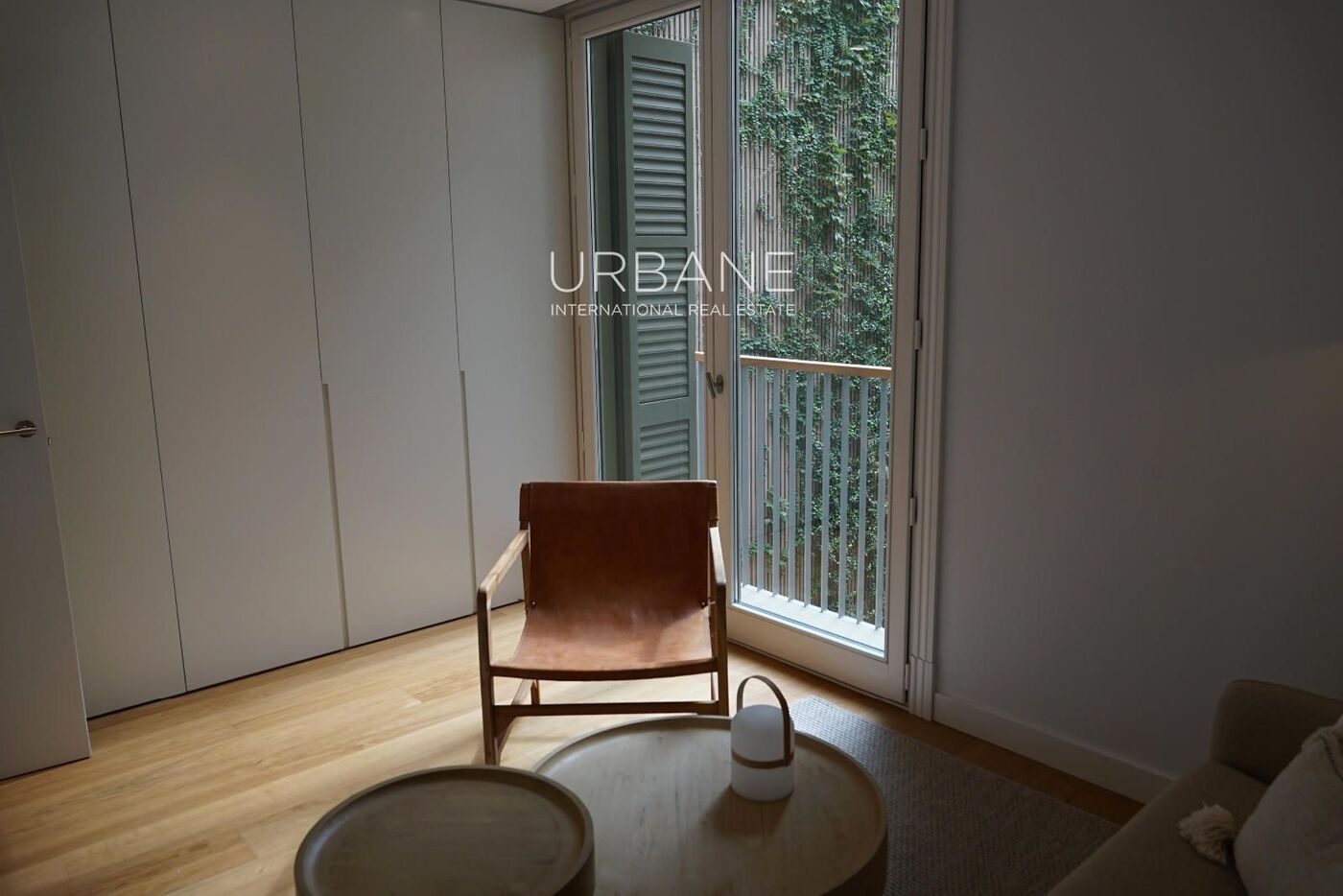 The building, which consists of only 21 residences, creates an intimate and peaceful living environment for its occupants. Residents also have access to a beautiful communal rooftop terrace, adorned with plants and noble materials, offering stunning views of neighboring modernist buildings such as Casa Batlló and Casa Milà. This rooftop is a privileged space, featuring an outdoor pool, ideal for cooling off while enjoying the panoramic views of Barcelona.