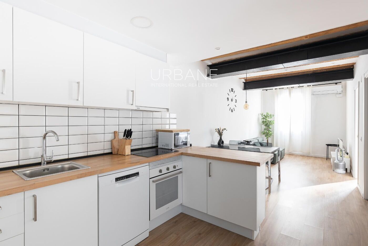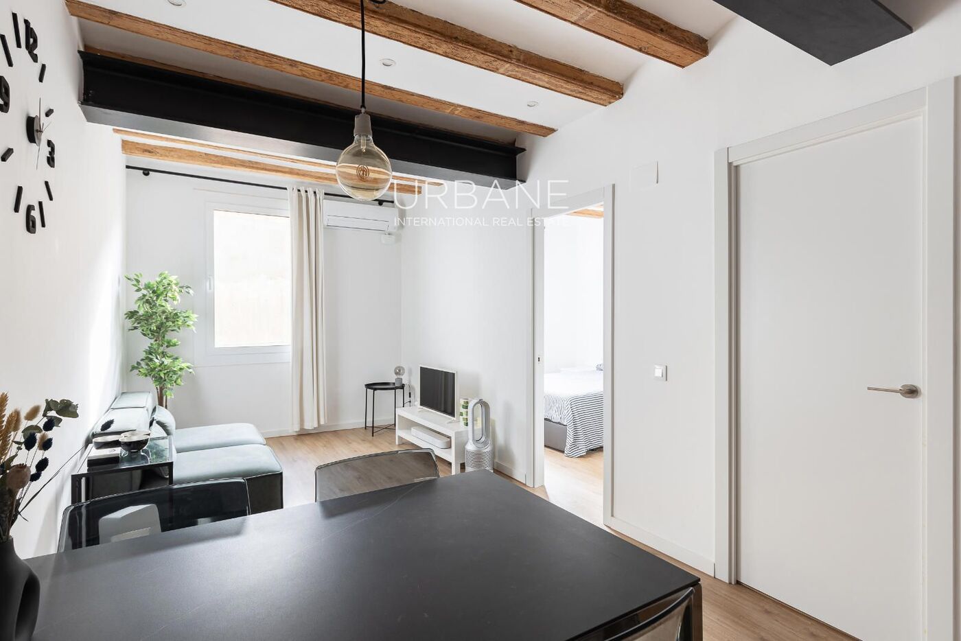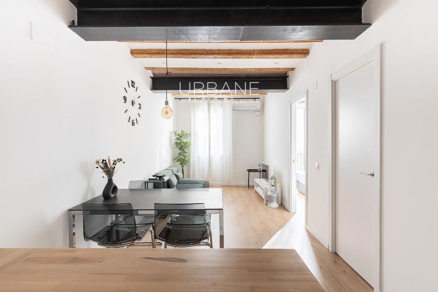 Located on the third floor of a historic building in Barcelona's vibrant El Raval neighborhood, this fully renovated apartment offers a perfect blend of modern living and classic charm. Spanning 55 m², it features two cozy bedrooms, a sleek bathroom, and a spacious open-concept living area. Bathed in natural light from its southeast-facing orientation, this home is a true gem for those seeking comfort, style, and convenience.