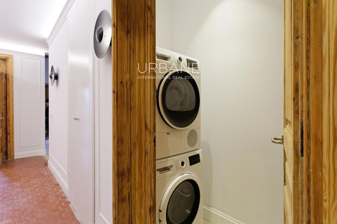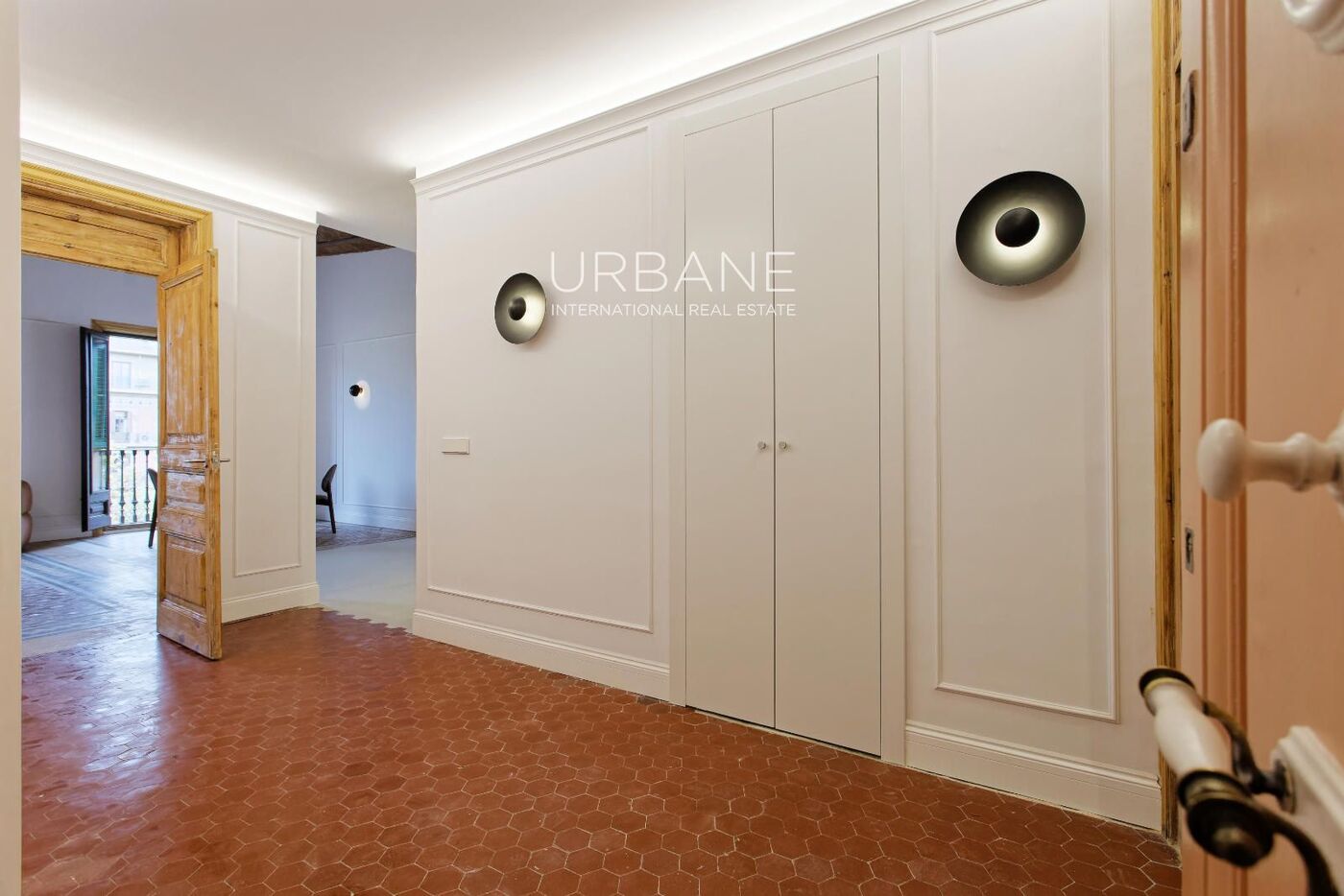 Dès l'entrée, vous serez séduit par la hauteur des plafonds, typiques des bâtiments de cette époque. Ces éléments architecturaux apportent une sensation d'espace et de lumière tout au long de l'appartement. Le sol en mosaïque Nolla, rénové avec soin, conserve l'esprit du design traditionnel de Barcelone tout en s'harmonisant parfaitement avec les touches contemporaines de l'intérieur.