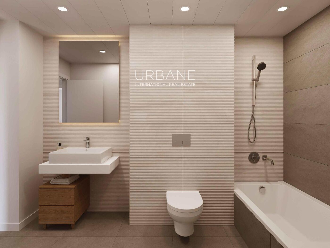 El apartamento dispone de dos amplios dormitorios y dos baños modernos. El baño principal está equipado con plato de ducha extraplana, grifería termostática y espejos retroiluminados con tecnología LED, mientras que el segundo baño cuenta con bañera y mueble de lavabo, ofreciendo comodidad y funcionalidad tanto para el día a día como para invitados.