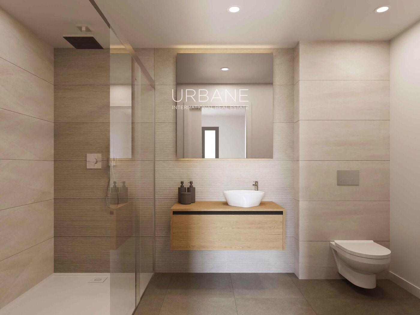 El apartamento dispone de dos dormitorios de generosas dimensiones y dos baños modernos. El baño principal cuenta con plato de ducha extraplana, grifería termostática y espejos retroiluminados con LED, mientras que el segundo baño está equipado con bañera y mueble de lavabo contemporáneo, ofreciendo comodidad y funcionalidad.